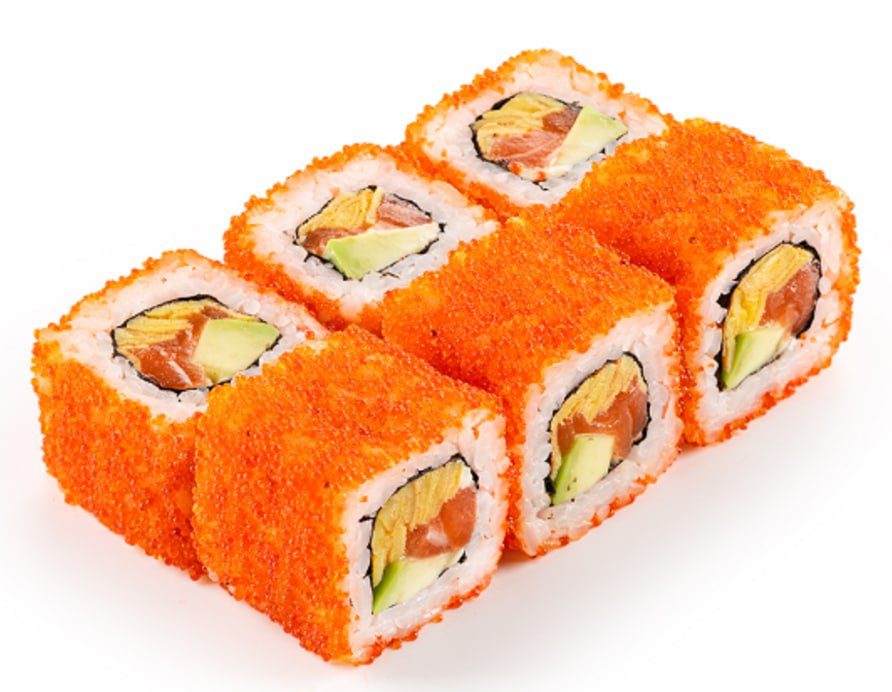 Лосось, тамаго, авокадо, тобико, майонез, рис, васаби, нори